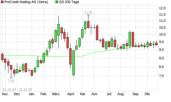 Mit dem Anstieg auf 9,48 EUR hat die ProCredit Holding-Aktie am 20.10.2025 die 200-Tage-Linie nach oben gekreuzt.