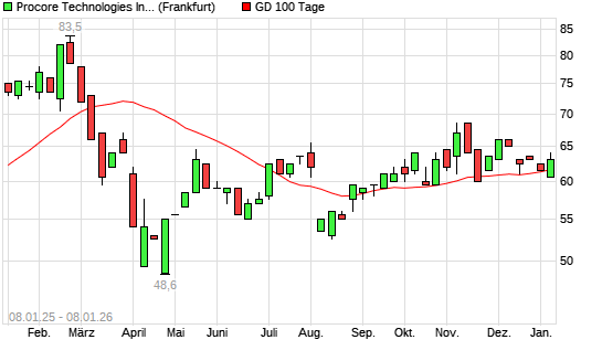Mit dem Anstieg auf 64,00 EUR hat die Procore Technologies-Aktie am 07.01.2026 die 100-Tage-Linie nach oben gekreuzt.