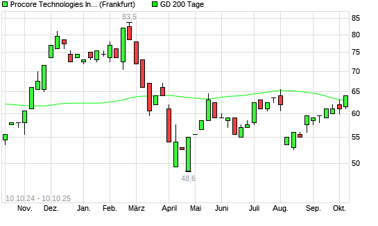 Mit dem Anstieg auf 63,50 EUR hat die Procore Technologies-Aktie am 09.10.2025 die 200-Tage-Linie nach oben gekreuzt.