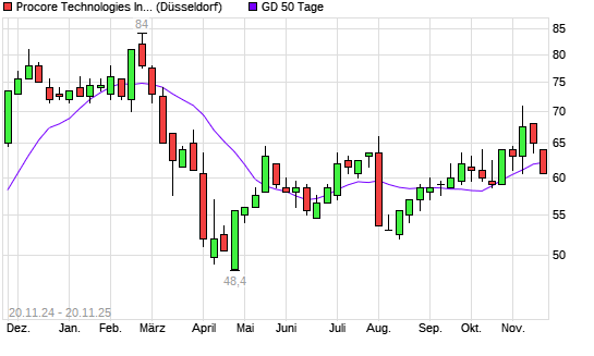 Mit dem Anstieg auf 62,50 EUR hat die Procore Technologies-Aktie am 19.11.2025 die 50-Tage-Linie nach oben gekreuzt.