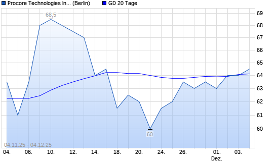 Mit dem Rücksetzer auf 64,00 EUR hat die Procore Technologies-Aktie am 03.12.2025 die 20-Tage-Linie nach unten gekreuzt.