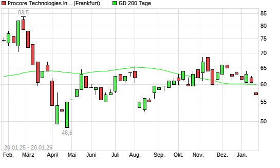 Mit dem Rücksetzer auf 57,50 EUR hat die Procore Technologies-Aktie am 19.01.2026 die 200-Tage-Linie nach unten gekreuzt.