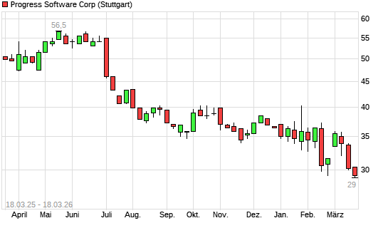 Mit dem Rücksetzer auf 29,20 EUR hat die Progress Software-Aktie (ISIN US7433121008) am 17.03.2026 ein neues 5-Jahres-Tief erreicht und damit den Kurs vom 18.02.2026 eingestellt.