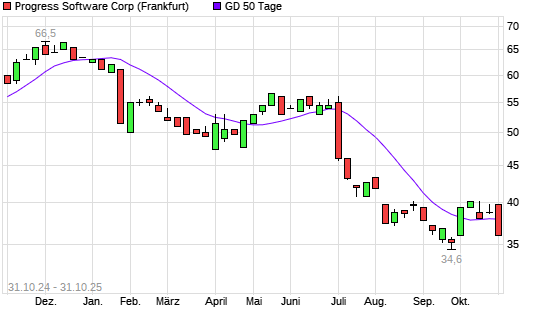 Mit dem Rücksetzer auf 37,00 EUR hat die Progress Software-Aktie am 30.10.2025 die 50-Tage-Linie nach unten gekreuzt.