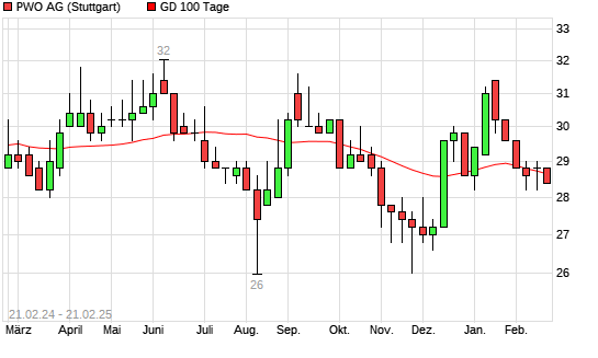 Mit dem Rücksetzer auf 28,20 EUR hat die Progress-Werk Oberkirch-Aktie am 20.02.2025 die 100-Tage-Linie nach unten gekreuzt.
