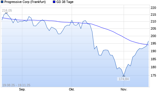 Mit dem Anstieg auf 196,72 EUR hat die Progressive-Aktie am 18.11.2025 die 38-Tage-Linie nach oben gekreuzt.
