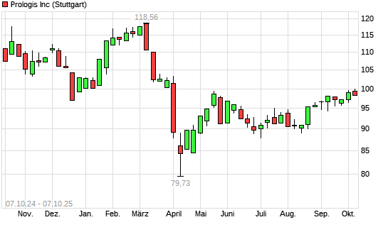 Mit dem Anstieg auf 99,44 EUR hat die Prologis-Aktie (ISIN US74340W1036) am 06.10.2025 ein neues 6-Monats-Hoch erreicht und damit den Kurs vom 03.10.2025 eingestellt.