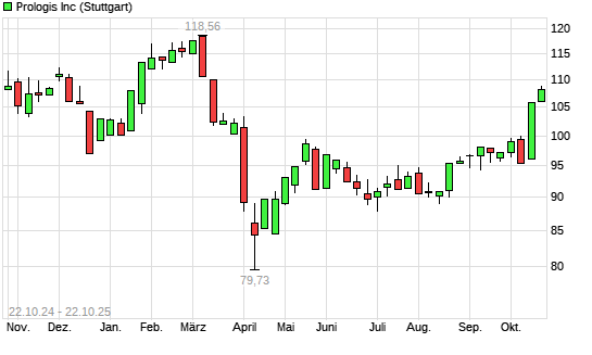 Mit dem Anstieg auf 108,76 EUR hat die Prologis-Aktie (ISIN US74340W1036) am 21.10.2025 ein neues 6-Monats-Hoch erreicht und damit den Kurs vom 20.10.2025 eingestellt.
