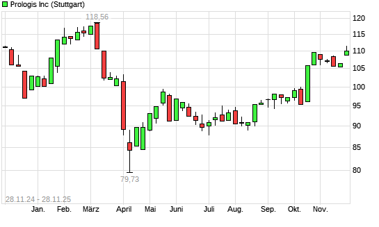 Mit dem Anstieg auf 109,98 EUR hat die Prologis-Aktie (ISIN US74340W1036) am 27.11.2025 ein neues 6-Monats-Hoch erreicht und damit den Kurs vom 26.11.2025 eingestellt.