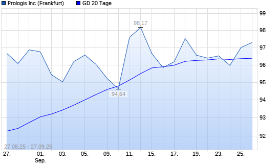 Mit dem Anstieg auf 96,56 EUR hat die Prologis-Aktie am 26.09.2025 die 20-Tage-Linie nach oben gekreuzt.