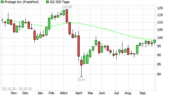 Mit dem Anstieg auf 98,66 EUR hat die Prologis-Aktie am 02.10.2025 die 200-Tage-Linie nach oben gekreuzt.