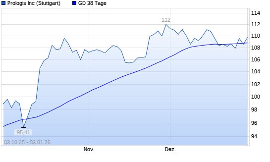 Mit dem Anstieg auf 109,60 EUR hat die Prologis-Aktie am 02.01.2026 die 38-Tage-Linie nach oben gekreuzt.