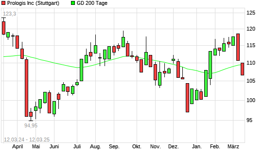 Mit dem Rücksetzer auf 107,94 EUR hat die Prologis-Aktie am 11.03.2025 die 200-Tage-Linie nach unten gekreuzt.