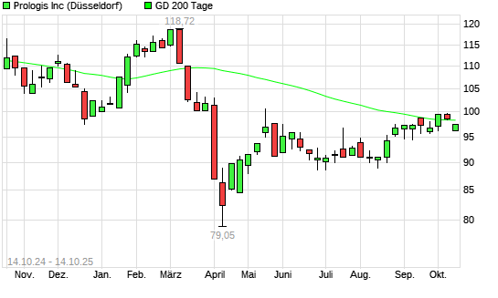 Mit dem Rücksetzer auf 96,15 EUR hat die Prologis-Aktie am 13.10.2025 die 200-Tage-Linie nach unten gekreuzt.