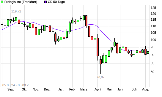 Mit dem Rücksetzer auf 90,55 EUR hat die Prologis-Aktie am 04.08.2025 die 50-Tage-Linie nach unten gekreuzt.