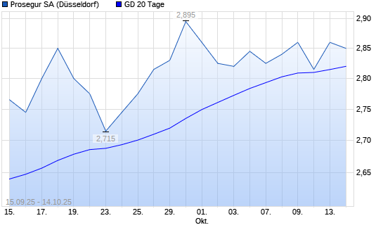 Mit dem Rücksetzer auf 2,78 EUR hat die Prosegur-Aktie am 13.10.2025 die 20-Tage-Linie nach unten gekreuzt.