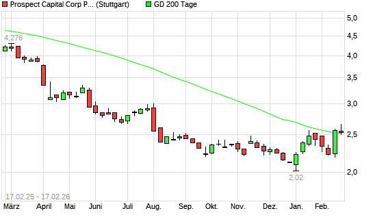 Mit dem Anstieg auf 2,60 EUR hat die Prospect Capital-Aktie am 16.02.2026 die 200-Tage-Linie nach oben gekreuzt.