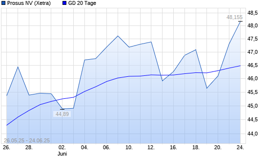 Mit dem Anstieg auf 46,98 EUR hat die Prosus-Aktie am 23.06.2025 die 20-Tage-Linie nach oben gekreuzt.