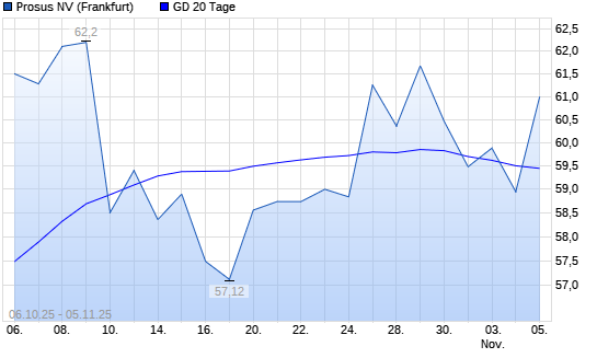 Mit dem Rücksetzer auf 58,95 EUR hat die Prosus-Aktie am 04.11.2025 die 20-Tage-Linie nach unten gekreuzt.
