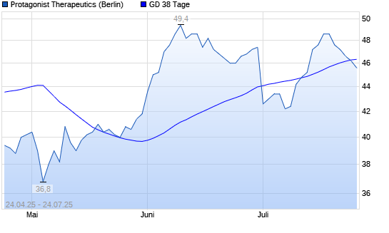 Mit dem Rücksetzer auf 46,20 EUR hat die Protagonist Therapeutics-Aktie am 23.07.2025 die 38-Tage-Linie nach unten gekreuzt.