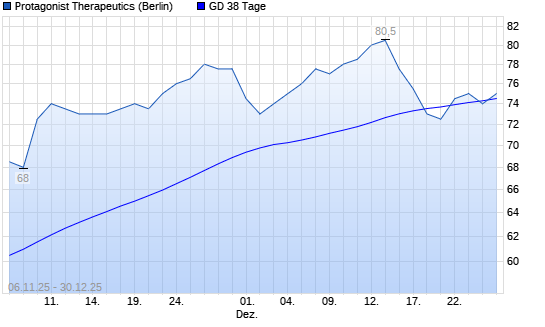 Mit dem Anstieg auf 75,00 EUR hat die Protagonist Therapeutics-Aktie am 05.02.2026 die 38-Tage-Linie nach oben gekreuzt.Die Protagonist Therapeutics-Aktie befindet sich seit dem 27.05.2025 im ...weiterlesen