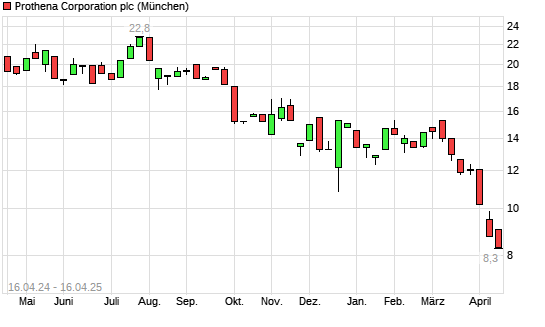 Mit dem Rücksetzer auf 8,30 EUR hat die Prothena Corp.-Aktie (ISIN IE00B91XRN20) am 15.04.2025 ein neues 3-Jahres-Tief erreicht und damit den Kurs vom 10.04.2025 eingestellt.