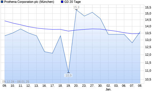 Mit dem Anstieg auf 13,50 EUR hat die Prothena Corp.-Aktie am 07.01.2025 die 20-Tage-Linie nach oben gekreuzt.