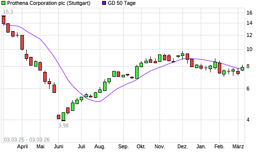 Mit dem Anstieg auf 7,90 EUR hat die Prothena Corp.-Aktie am 02.03.2026 die 50-Tage-Linie nach oben gekreuzt.