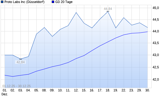 Mit dem Rücksetzer auf 44,28 EUR hat die Proto Labs-Aktie am 29.12.2025 die 20-Tage-Linie nach unten gekreuzt.Die Proto Labs-Aktie befindet sich seit dem 31.07.2025 im langfristigen Aufwärtstrend ...weiterlesen