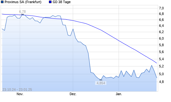Mit dem Rücksetzer auf 5,08 EUR hat die Proximus-Aktie am 22.01.2025 die 38-Tage-Linie nach unten gekreuzt.