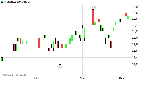 Mit dem Anstieg auf 12,60 EUR hat die Prudential-Aktie (ISIN GB0007099541) am 04.12.2025 ein neues 12-Monats-Hoch erreicht und damit den Kurs vom 03.12.2025 eingestellt.