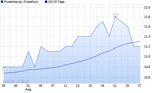 Mit dem Rücksetzer auf 11,20 EUR hat die Prudential-Aktie am 26.08.2025 die 20-Tage-Linie nach unten gekreuzt.