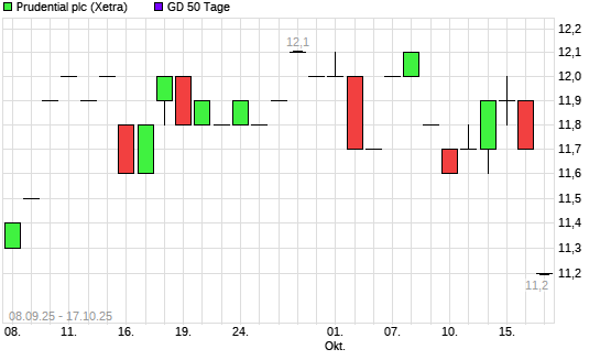 Mit dem Rücksetzer auf 11,50 EUR hat die Prudential-Aktie am 16.10.2025 die 50-Tage-Linie nach unten gekreuzt.