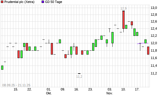 Mit dem Rücksetzer auf 11,90 EUR hat die Prudential-Aktie am 20.11.2025 die 50-Tage-Linie nach unten gekreuzt.