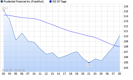 Mit dem Anstieg auf 110,25 EUR hat die Prudential Financial-Aktie am 28.02.2025 die 20-Tage-Linie nach oben gekreuzt.