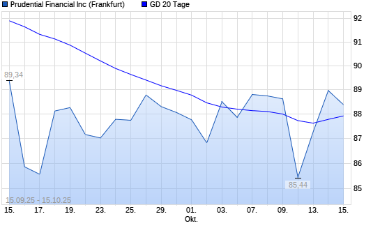 Mit dem Anstieg auf 88,96 EUR hat die Prudential Financial-Aktie am 14.10.2025 die 20-Tage-Linie nach oben gekreuzt.