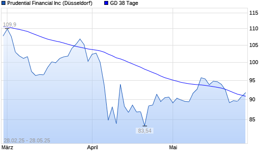 Mit dem Anstieg auf 92,00 EUR hat die Prudential Financial-Aktie am 27.05.2025 die 38-Tage-Linie nach oben gekreuzt.