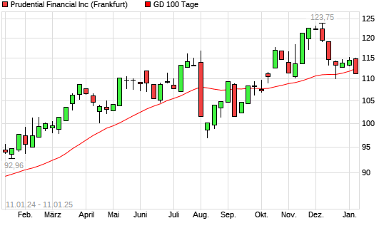 Mit dem Rücksetzer auf 111,20 EUR hat die Prudential Financial-Aktie am 10.01.2025 die 100-Tage-Linie nach unten gekreuzt.