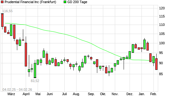 Mit dem Rücksetzer auf 90,78 EUR hat die Prudential Financial-Aktie am 03.02.2026 die 200-Tage-Linie nach unten gekreuzt.