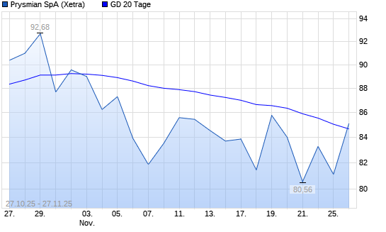 Mit dem Anstieg auf 85,32 EUR hat die Prysmian-Aktie am 26.11.2025 die 20-Tage-Linie nach oben gekreuzt.