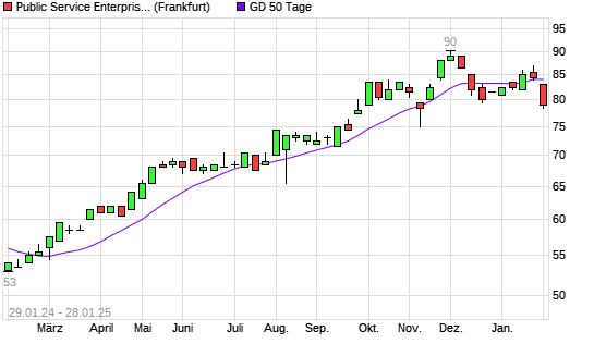 Mit dem Rücksetzer auf 83,00 EUR hat die Public Service Enterprise Group-Aktie am 27.01.2025 die 50-Tage-Linie nach unten gekreuzt.