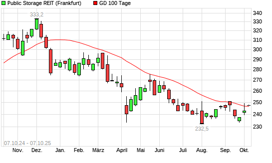 Mit dem Anstieg auf 247,60 EUR hat die Public Storage-Aktie am 06.10.2025 die 100-Tage-Linie nach oben gekreuzt.