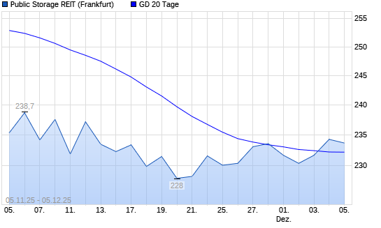 Mit dem Anstieg auf 234,30 EUR hat die Public Storage-Aktie am 04.12.2025 die 20-Tage-Linie nach oben gekreuzt.