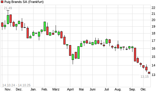 Mit dem Rücksetzer auf 13,21 EUR hat die Puig Brands-Aktie (ISIN ES0105777017) am 13.10.2025 ein neues All-Time-Low erreicht und damit den Kurs vom 09.10.2025 eingestellt.