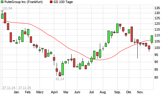 Mit dem Anstieg auf 108,30 EUR hat die PulteGroup-Aktie am 26.11.2025 die 100-Tage-Linie nach oben gekreuzt.