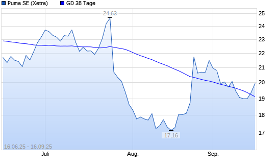 Mit dem Anstieg auf 19,48 EUR hat die Puma-Aktie am 15.09.2025 die 38-Tage-Linie nach oben gekreuzt.