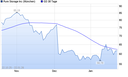 Mit dem Rücksetzer auf 59,16 EUR hat die Pure Storage-Aktie am 21.01.2026 die 38-Tage-Linie nach unten gekreuzt.