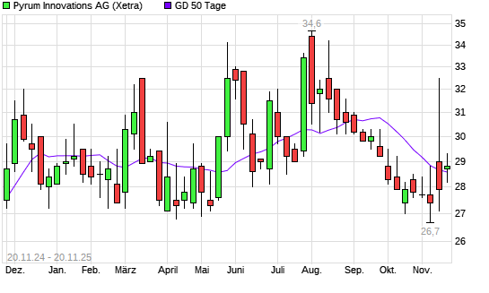 Mit dem Anstieg auf 28,50 EUR hat die Pyrum Innovations-Aktie am 19.11.2025 die 50-Tage-Linie nach oben gekreuzt.