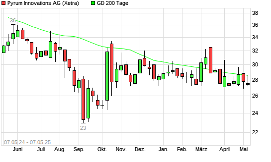 Mit dem Rücksetzer auf 27,60 EUR hat die Pyrum Innovations-Aktie am 06.05.2025 die 200-Tage-Linie nach unten gekreuzt.