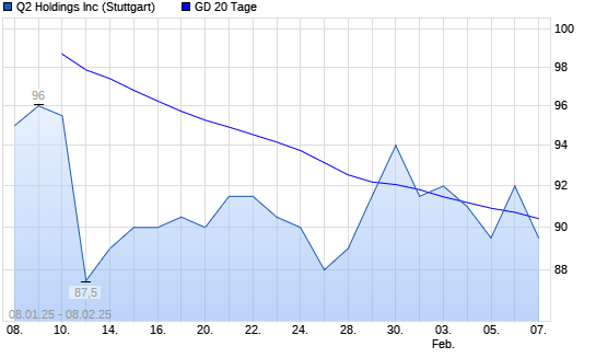 Mit dem Anstieg auf 92,50 EUR hat die Q2 Holding-Aktie am 07.02.2025 die 20-Tage-Linie nach oben gekreuzt.